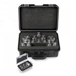 Weight sets 500 g and below include a polycarbonate case. Weight sets where the largest weight is 1 kg and above are supplied in a tough, lightweight, rugged case, designed to protect your weight set under any shipping circumstance.